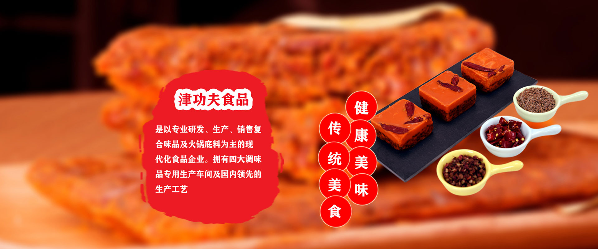 廣東津功夫食品有限公司,位于廣東省肇慶市國家高新區(qū),占地面積約2.5萬平方米,是以專業(yè)研發(fā)、生產(chǎn)、銷售復合調(diào)味品及火鍋底料為主的現(xiàn)代化食品企業(yè)。      "津功夫"為公司注冊商標。公司擁有四大調(diào)味品專用生產(chǎn)車間及國內(nèi)領先的生產(chǎn)工藝;裝備有反應釜、電磁炒鍋、天然氣炒鍋、蒸煮生產(chǎn)線、各型號全自動包裝機、冷封生產(chǎn)線等先進生產(chǎn)設備,年生產(chǎn)能力達2萬噸;配備有微檢、重金屬、金檢、水分、折光等檢測設備。        公司依照國家食品安全法,采用GMP及ISO管理標準,已先后通過ISO-22000質(zhì)量管理體系認證、HACCP認證。        公司研發(fā)團隊由公司創(chuàng)始人親自帶隊,立足當下,不斷創(chuàng)新,將在調(diào)味品行業(yè)20余年的潛心研究成果變?yōu)楝F(xiàn)實,精品輩出,為客戶創(chuàng)造更多、更好的價值。公司以川味調(diào)味品為根,以客戶需求為本,開發(fā)了復合調(diào)味品及火鍋底料兩大板塊的系列產(chǎn)品。復合調(diào)味品板塊涵蓋: